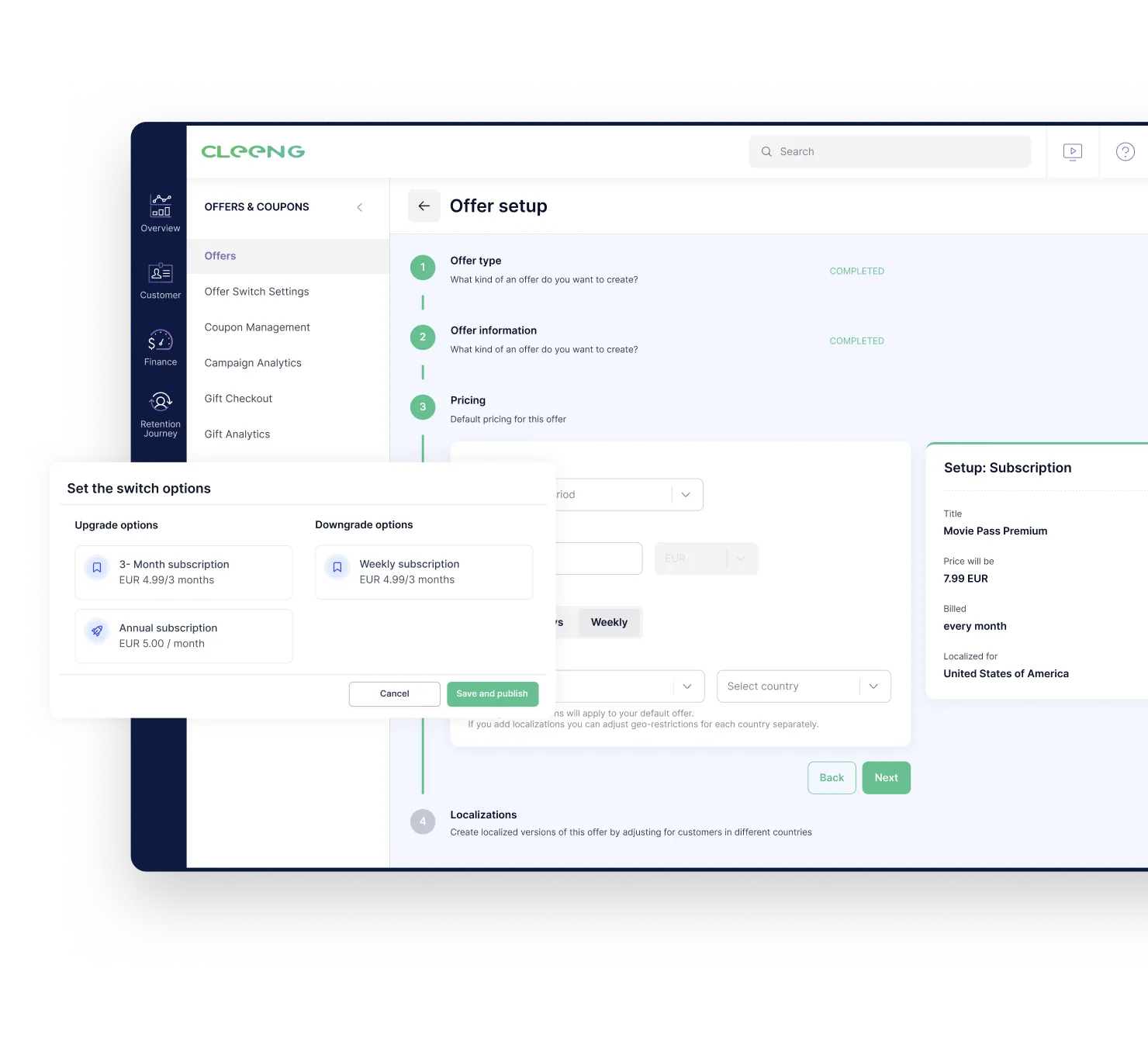 Create multiple offers, test pricing and build upgrade journeys to fit your subscribers’ needs